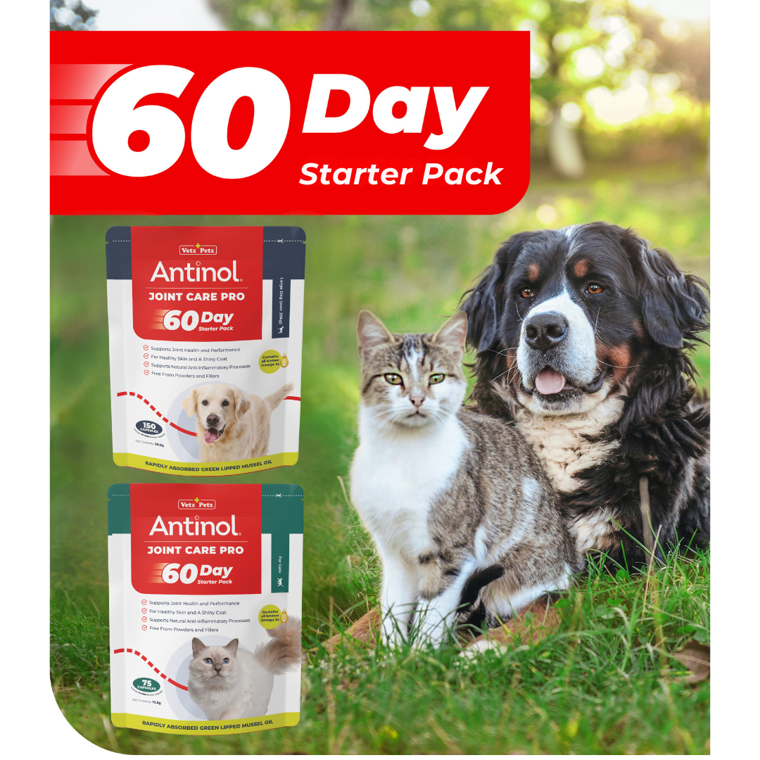 Each pet is different! Changes can be seen as early as 3 to 4 days after starting Antinol, but most pet owners will notice a difference within 15 days of use. Sometimes it can take up to 60 days to see the full beneficial effects of Antinol.This may vary depending on the individual situation of your cat or dog, so we recommend that you continue to give Antinol and monitor your pet for 60 days. For the first 15 days, we recommend that you feed double the normal amount of Antinol to reach the appropriate nutritional level.