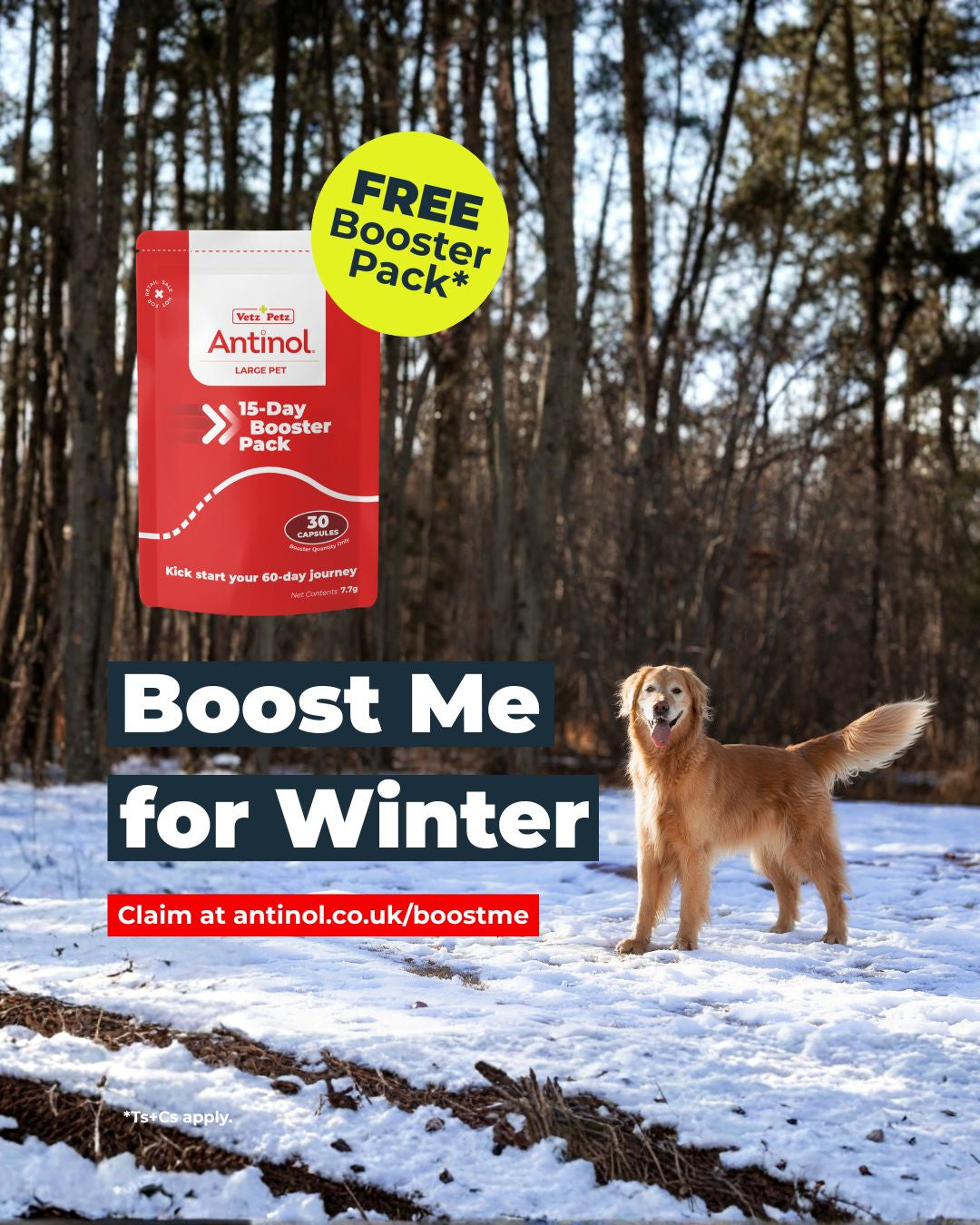 That’s why we created the Winter Booster — an extra seasonal support pack to help maintain joint health and keep your pet moving comfortably through winter. Whether your pet is already benefiting from Antinol® or you’re just getting started, the Winter Booster provides additional support during the months when they need it most.